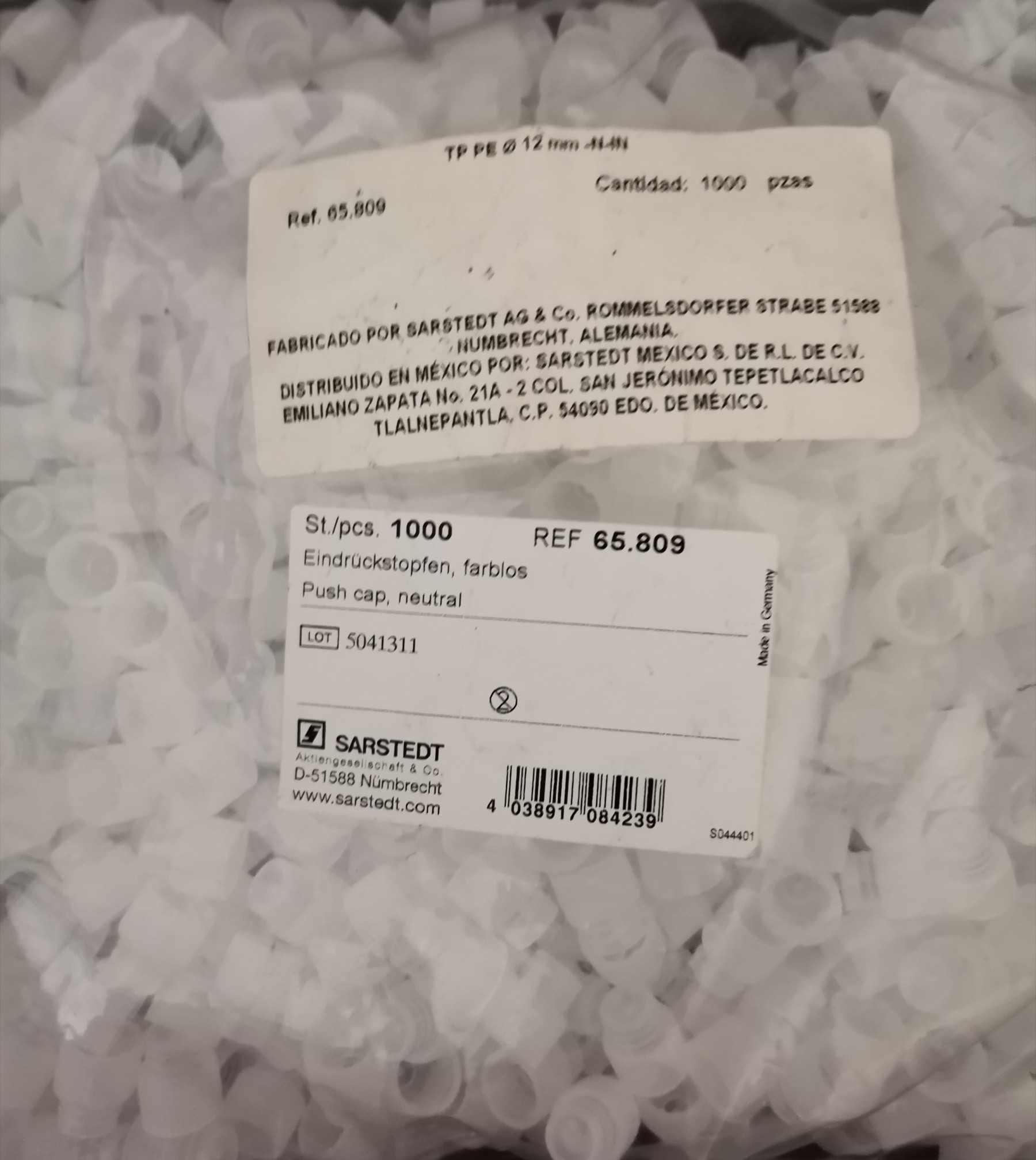 Tapón de plástico PE natural. Diámetro 12mm. Bolsa con 1000pzas. Marca: Sarstedt